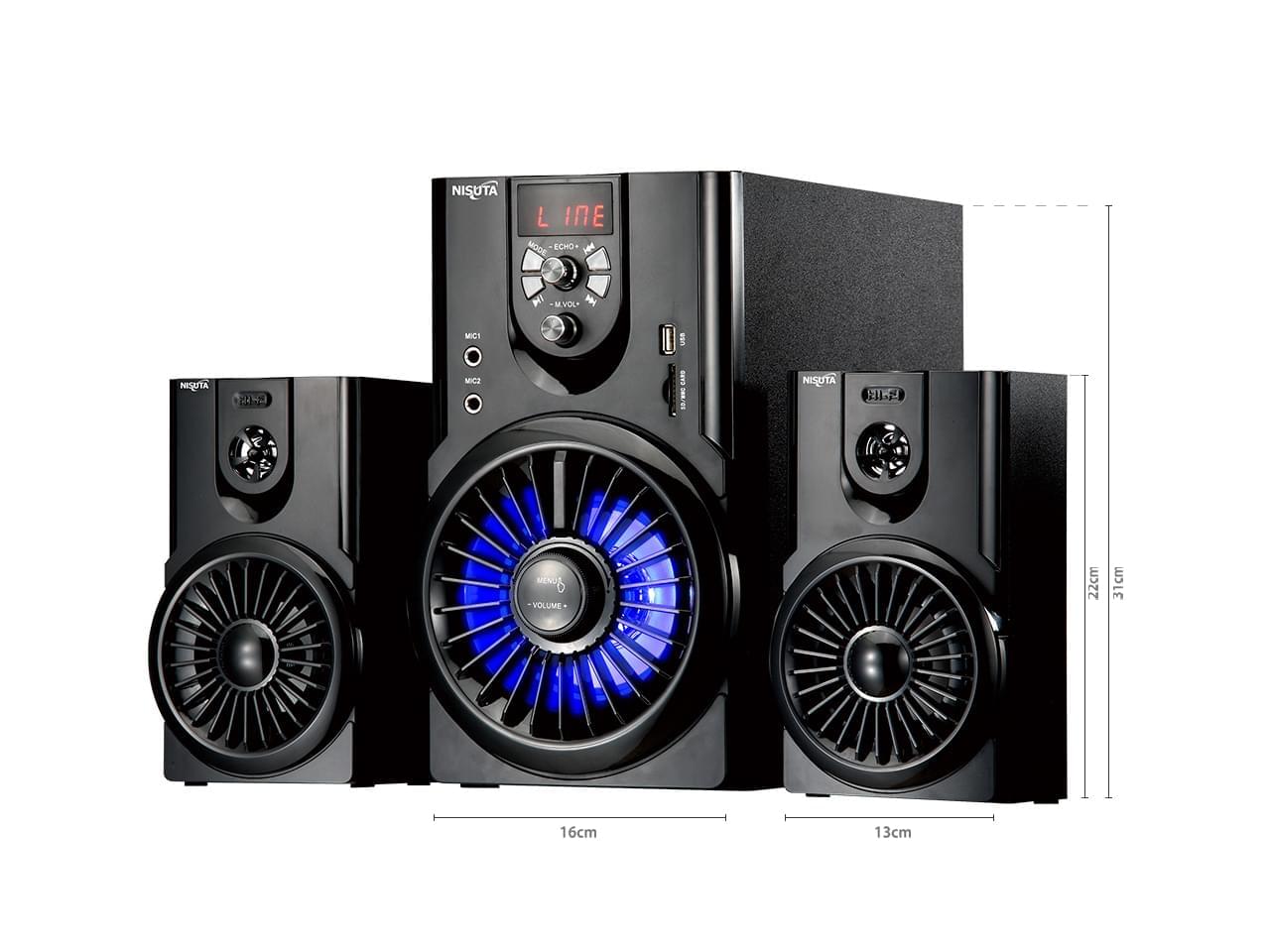 Parlante multimedia 2.1 con FM, Bluetooth, MP3 y luces (NSPAM82L)