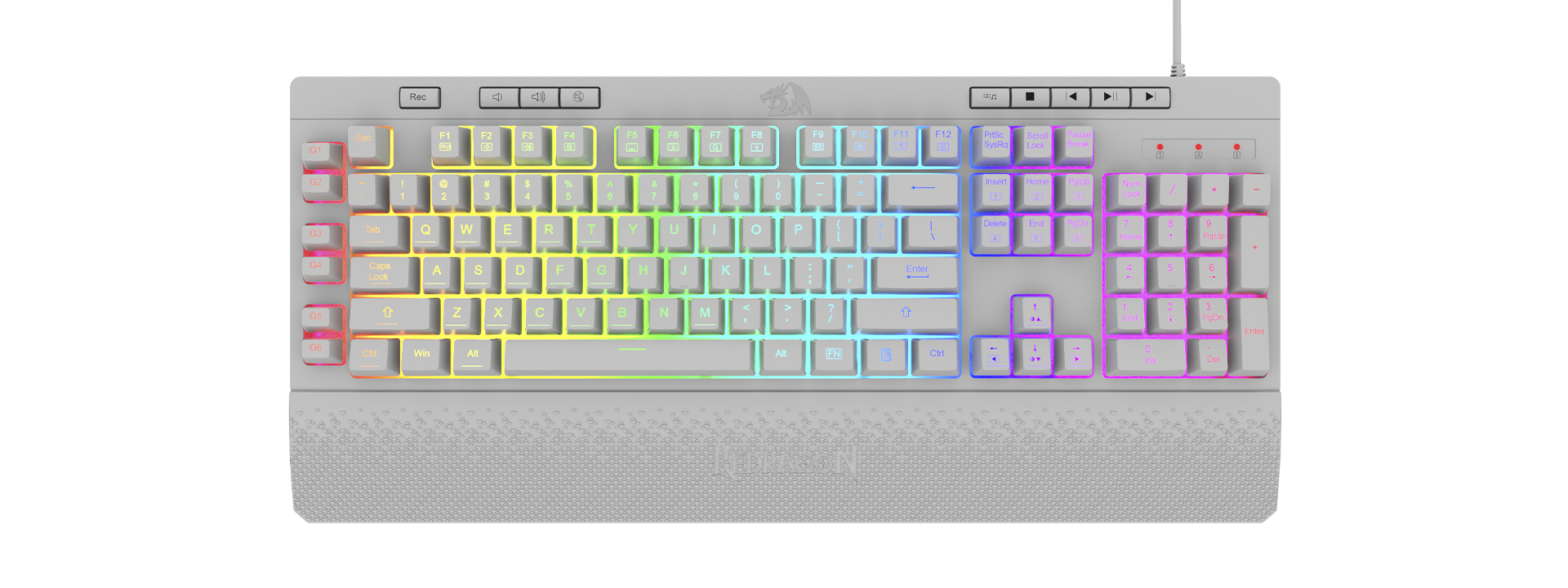 Teclado gamer Redragon Shiva K512 RGB QWERTY español latinoamérica color blanco con luz RGB