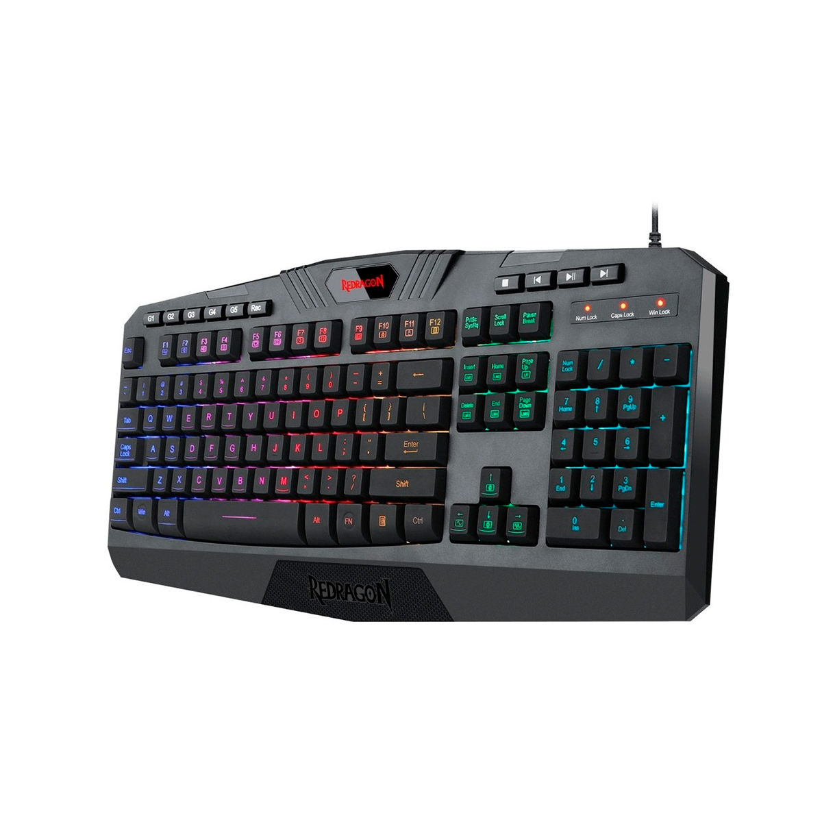Construido con plástico ABS reforzado con un diseño pensado para largas horas de juego y un reposamuñeca parte de su carcasa. Keycaps de gran durabilidad grabadas con láser con un perfil más bajo en relación a las keycaps normales. Los contactos están encapsulados haciéndolo antisalpicaduras. Su cable es engomado y resistente, con una ficha USB enchapada para la mejor transmisión.